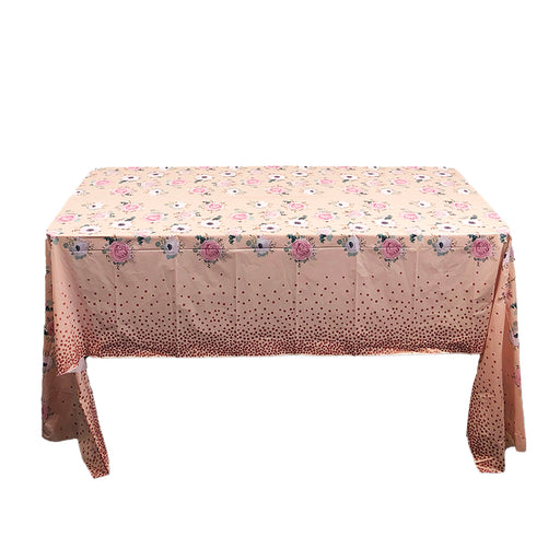 Rose Gold Floral Tablecover Plastic material, can be wiped down and reused Large tablecover - measures 108 x 54 inches Exclusive Rose Gold floral ...